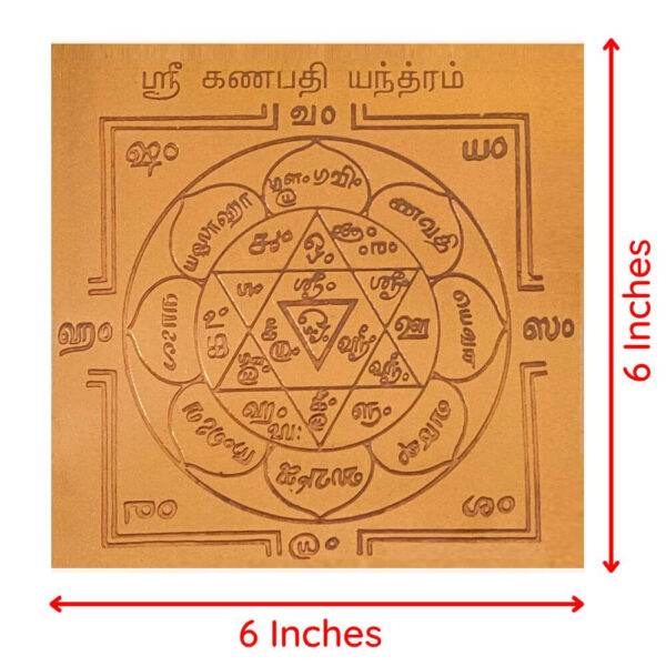 • Ganapathi Yantra is made of high quality 6 X 6 Inch thick Copper Plate.